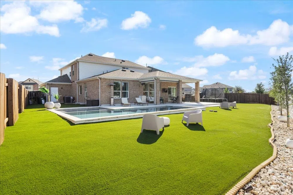 ***Price to sell*** This stunning 5-bedroom, 3.5-bathroom home is situated on a serene cul-de-sac and offers a mother-in-law floor plan with loads of upgrades. The open, light-filled layout features a modern kitchen, motorized shades, and durable vinyl flooring. Other highlights include a 3-bay garage, a custom powder room, and a versatile office space – truly a perfect blend of luxury and comfort in Mason Hills! And let's talk about the outdoor space! This home boasts an exquisite outdoor oasis with lots of upgrades. With a heated-pool, in perfectly leveled turf, and an elegant stone bed. The custom outdoor kitchen is perfect for entertaining, and the shed provides extra storage, all within a beautifully low-maintenance setting.