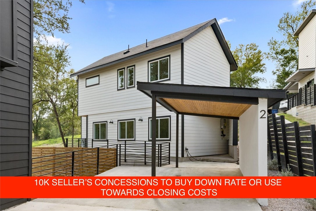 10K interest rate buy down offered to buyer. Come view this beautiful new construction 2 bedroom, 2.5 bathroom ADU built by ROMA Homes located in East Austin features a patio and backyard that’s rare to find in ADUs. Enjoy the outdoor living space and balconies located next to an empty city lot providing you with the utmost privacy, lush views and quiet green space . The well-thought-out and functional floor plan is full of natural light with an open kitchen offering custom cabinet space, stainless steel appliances, and tile floor throughout the main level. Other features include engineered white oak floors upstairs, beautiful granite countertops throughout the home, and a one-car carport with an additional parking space. Energy efficient home with spray foam insulation and a tankless water heater. This prime location offers easy access to both major highways I-35 and HWY 183. Located 10 minutes to downtown Austin, 15 minutes to the new Tesla factory, 10 minutes to Oracle, and just 15 minutes to the Austin Bergstrom International Airport. Whether your interests are in culture, fitness, nature or cuisine, this neighborhood offers it all. Just steps from Sahara Lounge, a few blocks from Austin Bouldering Project, EastCiders, Canopy art studios, local art galleries, cafes, and boutiques. Enjoy easy access to nature with the property backed up to Springdale Park and a few blocks from the hike and bike trails of South Walnut Creek. This is the urban home you have been waiting for in East Austin! HOA $0 - Contact me for additional information!