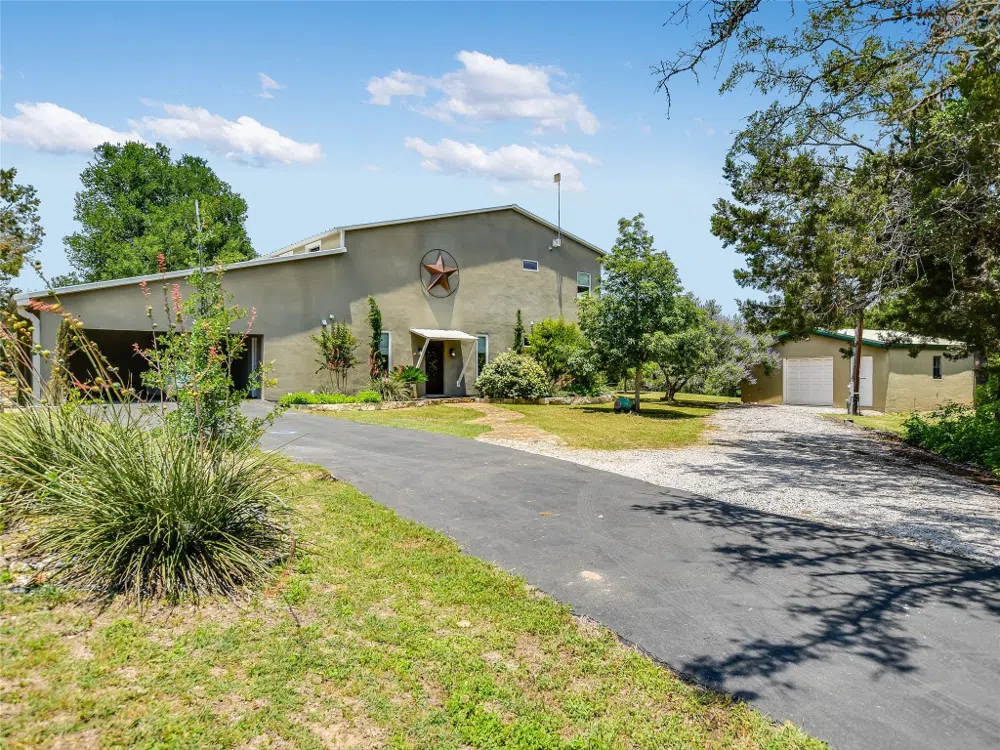 Price reduced! One of the most unique houses you'll ever encounter*Potential to live completely off the grid on this 1.36 Acre property*There is a cantilevered deck overlooking the San Gabriel River*A covered patio with outdoor fireplace & two fans*A detached garage holds a workshop that includes a fully functional water treatment system using the three storage tanks to provide highly purified drinking water for in-house usage*A fence surrounds the entire property & both sides of the property are heavily forested to provide privacy*EV car charger**Laundry room is completely isolated from living area using only outside air to prevent dust from entering the house*House features an open floor plan great for entertaining*Stunning family room has a dramatic two-story ceiling*Features include double French doors, laminate flooring, fireplace & ceiling fans*Lovely IKEA kitchen with granite countertops, stainless steel appliances, gas cooking, breakfast bar, tile flooring & pendant lighting*An adorable banquette and built-in desk area are additional highlights*The private upstairs primary suite has a balcony with gorgeous views of the San Gabriel River and hill country*Features include a ceiling fan, two walk-in closets and an en-suite bath*Primary bath has double vanities, jetted tub and walk-in shower*There are two secondary bedrooms and a full bath downstairs*Owners have been granted a permanent easement to access and pump water from the San Gabriel and use the cantilevered deck*Constructed of Grid Block walls*Galvamet Roof & Ceiling*Roof is Steel and ceiling is steel with 4” of poly-foam between making the combination of materials a highly effective insulator*HVAC is a geothermal unit that uses cooling water from three 350’ wells to bring in 60-70 deg F water with the heating/cooling unit to make up to thermostat temperature*This is an extremely efficient system combined with Grid block walls and Galvamet roofing*Low tax rate - under 2%!