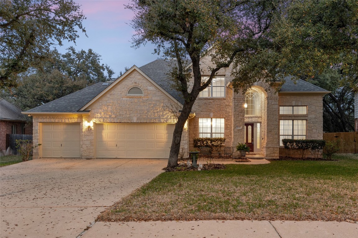 This beautiful Morrison home sits on a majestic, tree-filled lot w/ lots of landscaping in the highly sought-after neighborhood of Wood Glen. Located within minutes of local employers that include Dell, Samsung, 3M, Amazon and the Kalahari Resorts, this home has it all! The kitchen is large and includes beautiful granite counters, decorative backsplash, an instant hot water dispenser, and is open to the family room. The primary owner's suite is located on the main level of the home. The ensuite features double vanities, granite counters, a beautiful walk-in shower, soaking tub, and large walk-in closet. Working from home is convenient with a designated, first-floor office and plenty of room upstairs for a second office. The upstairs area is highlighted by a large gameroom, and three other bedrooms + two additional full bathrooms that feature upgraded wood/tile flooring and granite countertops. This beautiful backyard boasts an extended deck which backs to a private, wooded area. Enjoy relaxing in the backyard that has lots of room for recreation and your own greenhouse! The Wood Glen neighborhood features hiking trails, community pool, and tennis courts. Low Tax Rate (2.09). Large 3-Car Garage! Great Round Rock schools too!