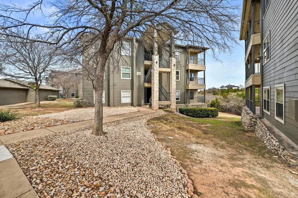 In Stoneleigh Condos, this 2 bedroom, 1 full bath first floor condo offers a true lock and leave lifestyle with no stairs and easy everyday living. Set into a hillside, the home sits at ground level while still feeling elevated, with peaceful greenbelt views and added privacy. Stoneleigh Condos are known for their quiet, gated setting while staying close to everything that matters. Inside, the layout opens immediately into a connected living, dining, and kitchen space designed for daily use and easy flow. The kitchen is generously sized with a breakfast bar, pantry, tile backsplash, electric range, built in microwave, and strong storage throughout. Fresh paint and new laminate flooring carry through the home, giving the interior a cohesive, updated feel. Natural light fills the living area, drawing your eye toward the wooded green space behind the property. Both bedrooms are spacious and positioned for privacy, each with walk in closets and room for full size furniture. The full bathroom is centrally located and easy to access from both bedrooms and the main living area. Two covered patios extend the living space outdoors, both facing the greenbelt, offering shaded spots for morning coffee or evening downtime while overlooking trees. This unit includes washer and dryer connections inside the home, along with a dedicated storage space and a 1 car carport. The location within the community is especially convenient, close to the entrance, mail room, pool, clubhouse, and shared fitness center. Stoneleigh Condos place you minutes from The Domain, Topgolf, Q2 Stadium, and MoPac, making commuting, dining, and entertainment easy while still coming home to a tucked away setting. From greenbelt views, first-floor access and quick routes to The Domain, Stoneleigh Condos offer an easy, well-connected way to live in North Austin.