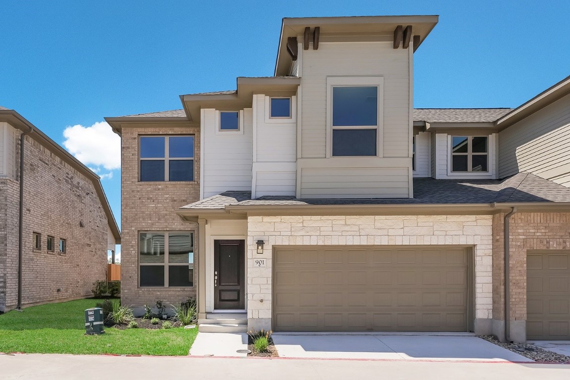 Welcome to this beautiful home in the exclusive Sonoma Heights neighborhood! This corner unit is bright and inviting, with plenty of natural light pouring into each room. You'll love the open floor plan, which is perfect for entertaining friends and family. The gourmet kitchen features grey cabinets with chrome hardware, white quartz countertops, a stainless-steel apron front sink, and more. An oversized shower and designer tile flooring complete the spa-like primary bathroom. 7.5" brown/grey plank floors run throughout the main living areas and hexagon marble tile styles the floor of the powder bathroom. This home also has many added benefits that you don't want to miss out on: foam insulation in shared walls; indoor pest control, wiring for an alarm system and keypad front door access. Enjoy the outdoors? The privately fenced backyard is perfect for entertaining friends or hosting family barbecues – you also have easy access to Brushy Creek Trail, which is located within walking distance. With all of this and Sonoma Heights’ low tax rate, what more could you want? Don't miss out on this amazing opportunity - schedule a tour today!
