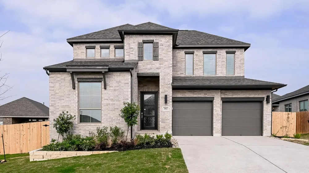 READY FOR MOVE-IN! Home office with French doors set at two-story entry. Two-story family room with wall of windows opens to kitchen and dining area. Kitchen hosts inviting island with built-in seating space. First-floor primary suite includes dual vanities, freestanding tub, separate glass-enclosed shower and large walk-in closet in primary bath. A second bedroom is downstairs. Two secondary bedrooms and a game room are upstairs. Extended covered backyard patio and 7-zone sprinkler system. Two-car garage.