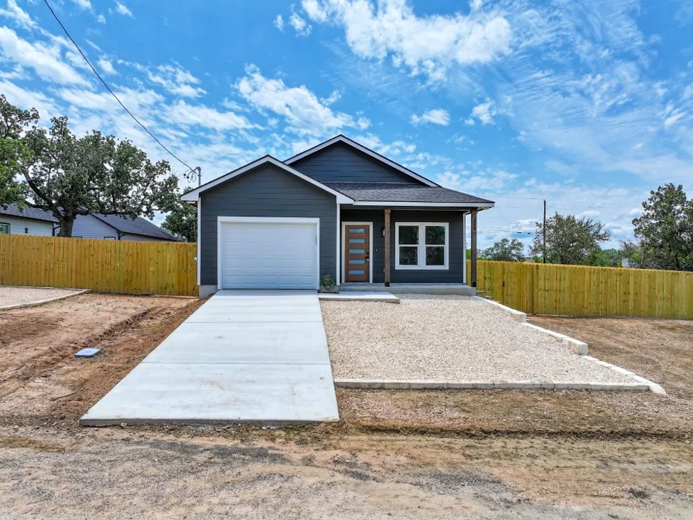 Stunning 3/2/1 New Construction Home in Granite Shoals with easy access to Lake LBJ waterfront parks! A sunny, light and bright living area w/ vaulted ceilings & cedar beam welcomes you as you enter the home, then seamlessly flows into your kitchen/dining area. You are going to love the pretty kitchen w/ custom cabinets featuring soft close doors/drawers, floating cedar shelves, farm sink, full appliance package including refrigerator & quartz countertops. The owner's retreat has a spacious en-suite bath with a free-standing double vanity, walk in tile shower and a big walk-in closet. Casaperior Homes builds a very energy efficient home w/ 100% spray foam insulation and lots of attention to detail! SHORT TERM RENTALS ALLOWED!! **Information deemed reliable but not guaranteed- buyer and/or buyer's agent to verify all information. ** Seller will buy down buyer's interest rate with strong offer!!