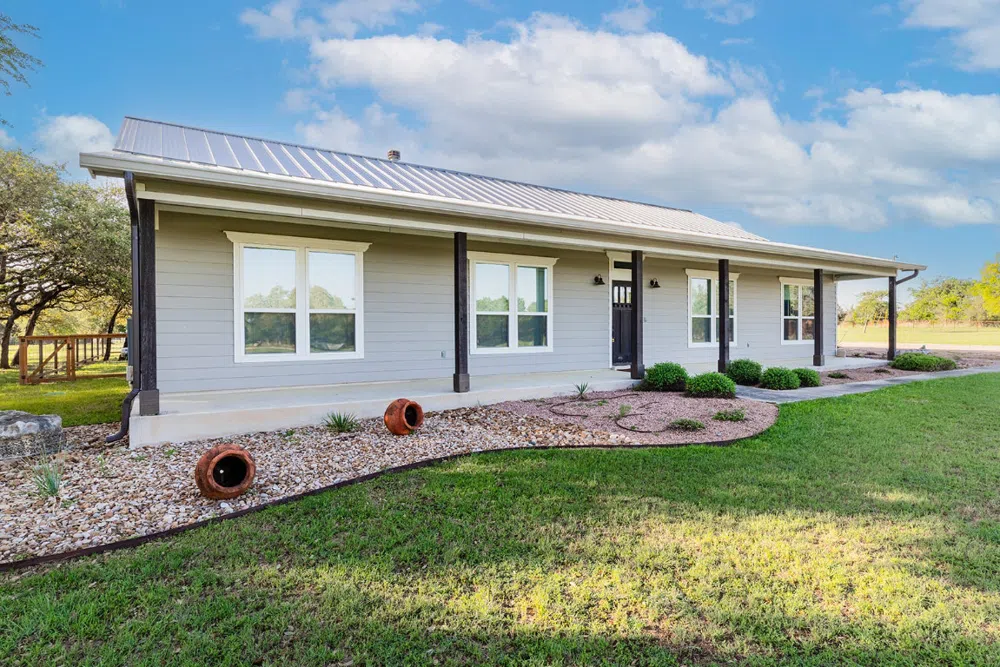 Welcome to your dream modern farmhouse on 5 fully fenced acres in Georgetown, TX! This charming single-story retreat offers the perfect mix of privacy, space, and upgrades — surrounded by beautiful oak trees, a gated entrance, and metal horse fencing. The home features a new metal roof (Dec 2023), a brand-new HVAC system (Feb 2025), a water heater (Dec 2021), and a freshly pumped septic system (March 2025), offering peace of mind and move-in readiness. Inside, you’ll love the spacious great room with a stone fireplace, 3 bedrooms, 2.5 bathrooms, a dedicated office, and a luxurious primary suite with a walk-in shower and double vanity. The gourmet kitchen is a showstopper with Café-brand stainless fridge and microwave, Bosch dishwasher, double ovens, a center island, custom cabinetry, and a breakfast bar — perfect for cooking and entertaining. Additional highlights include a 2-car garage, 1-car workshop, a garden with raised beds, dual gate cedar fencing, and conveying washer, dryer, fridge, and appliances. The back 2.5 acres offers water access — ideal for building a barn, leasing as pasture, or expanding your outdoor lifestyle. Whether you’re looking for room to grow, a peaceful escape, or a property with flexible land use, this one checks all the boxes. Conveniently located just minutes from Lake Georgetown, shopping, and Georgetown ISD schools — this is country living without compromise. Schedule your private showing today and experience the freedom of Texas acreage living!