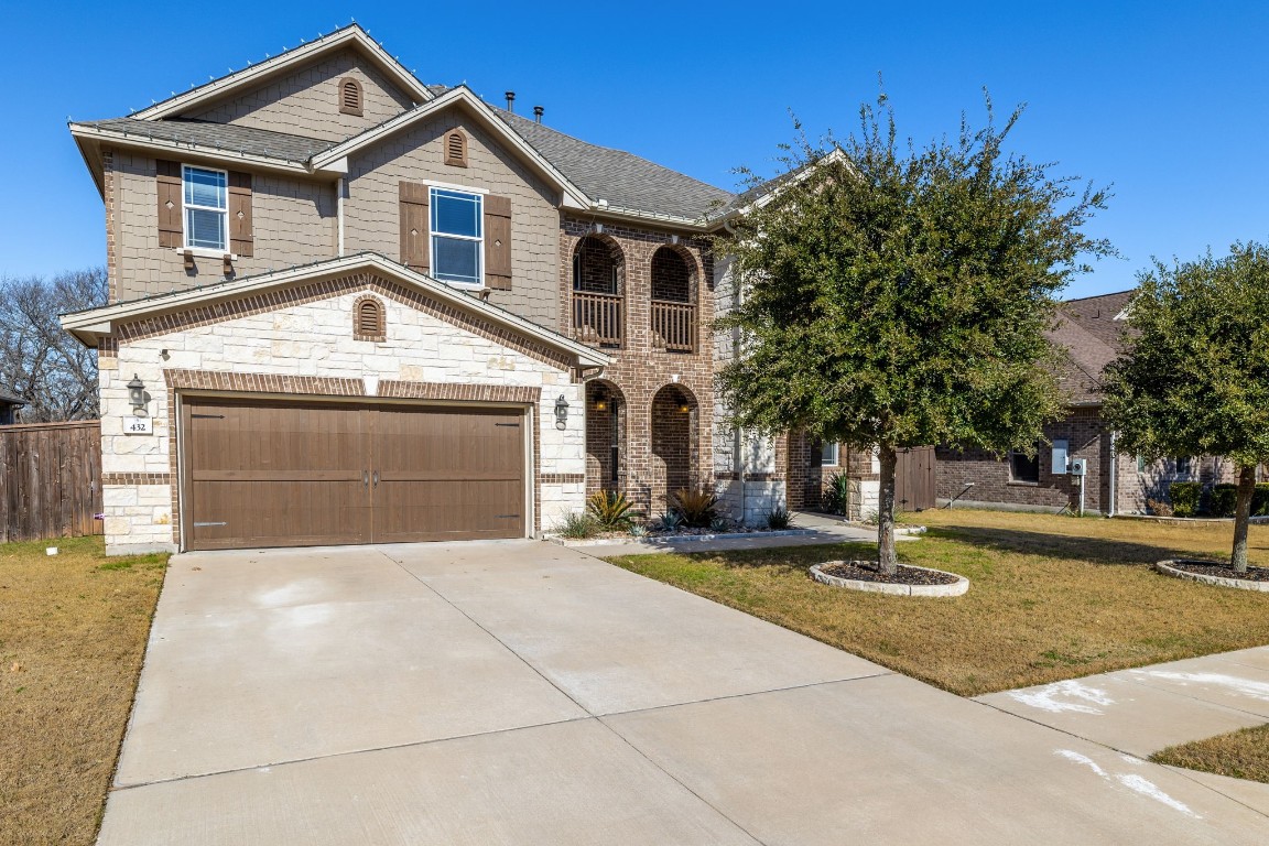 This is a Rare opportunity! This ultra-functional home in a fairly New Round Rock neighborhood checks all the boxes! This home boasts excellent curb appeal, a 2-car garage with epoxy flooring. 5 bedroom 2 1/2 bath home is loaded with upgrades and move in ready and to-enjoy . Dinning room with fireplace that is dual sided, Open floor plan kitchen opens to large living room ,large Master bedroom with bathroom suite jetted tub and separate shower. Upstairs has loft with 3 bedrooms ,Lg theater /bd.with wet bar, Full bath. With balcony to sit and enjoy neighborhood. Spend your evenings enjoying pool and wooded area backs up to Greenbelt, backs up to Brushy Creek . Easy access to to 45 /130 tolls and Hwy I 35 .