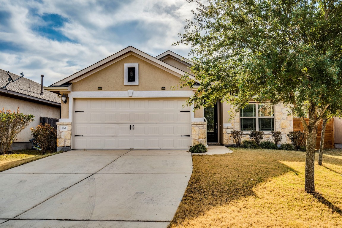 Come and live the good life in Buda’s peaceful Garlic Creek West community! Located just 20 miles south of downtown Austin and 8 miles from Southpark Meadows. This beautifully designed 1,515 sq ft one-story home offers 3 BD/2BA PLUS a home office. Excellent curb appeal with a stylish stucco exterior with elegant stone accents and meticulously maintained landscaping. The gorgeous interior offers a luminous open floor plan for the living room, kitchen, and dining area. Featuring gleaming hardwood floors, soaring vaulted ceilings, and an abundance of peaceful natural light. Easily entertain guests while preparing meals in the bright and spacious kitchen. Featuring SS appliances, granite countertops, and a sprawling kitchen peninsula with inviting breakfast bar seating. Enjoy a secluded owner’s suite at the back of the home with beautiful bay windows, vaulted ceiling, walk-in closet, and private ensuite bathroom. French doors off the entry foyer open into a bonus room that would make the perfect home office, guest room, or retreat space. Both generously sized secondary bedrooms offer walk-in closets and share a full guest bathroom. Enjoy relaxing and entertaining on the breezy back patio, which was made for BBQ parties. The fenced-in backyard is a blank slate just waiting for you to come and make it your own ideal outdoor oasis. Garlic Creek West residents enjoy fantastic community amenities including a 75-ft community pool, splash pad, fitness room, meeting rooms, sports court, several playgrounds, and serene nature trails. Less than 2 miles to excellent Hays ISD Schools. Just a mile away you can enjoy the lovely Buda Amphitheater & City Park and charming historic downtown Buda. Easy access to 976/1626 and just a few miles from I-35. Don’t miss out on this beauty, schedule a showing today.