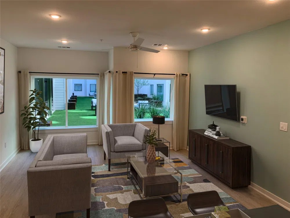 This unit is located one floor above the ground, with a same-level courtyard space that’s like having your own private, quiet backyard. Featuring linen curtains, designer color accent wall, and ceiling fans, this stunning first-floor unit offers luxury and convenience in a prime location. With 706 square feet, this one-bedroom, one-bath condo boasts an open-plan living area flooded with natural light from the solarium, providing tranquil courtyard views of the private, green space steps from your front door. The modern kitchen features stainless steel appliances and ample counter space, flowing seamlessly into the dining area and living room. Retreat to the bedroom with a spacious walk-in closet and easy access to the well-appointed bathroom. The Bend’s exclusive amenities in the heart of Austin include secure underground parking, a state-of-the-art fitness center, walking trails in a private greenbelt, bicycle storage and package receiving areas, and a serene pool area overlooking the creek. Located near South Congress's shopping and dining, The Bend offers unmatched living in Austin. Experience the lifestyle you deserve at The Bend Condominiums. Move-in deposit: $500 refundable, plus a $100 non-refundable fee. Includes extra storage (unit S3) and reserved parking (space 142).