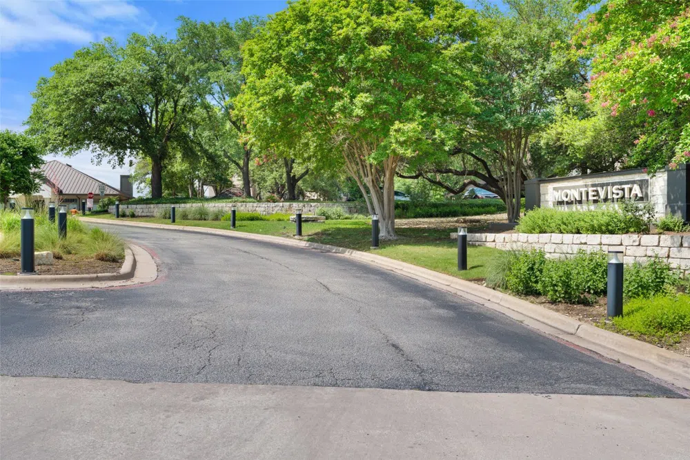 Come visit the beloved MonteVista Condos in West Austin, where you’ll be surrounded by lush Hill Country and views for miles. This rare corner unit features a wrap-around covered porch perfect for soaking in endless sunsets. Located just moments from the iconic Pennybacker Bridge and County Line on the Lake, you’re also only about 20 minutes to Downtown Austin, close to 360, and just about 15 minutes to The Domain. Whether you're commuting, shopping, or exploring the outdoors, the location can’t be beat. This serene community offers resort-style amenities like a sparkling pool, spa, gym, and community center, all designed to make life feel like a vacation. Inside the unit, enjoy vaulted ceilings, incredible natural light, and a thoughtful layout with 2 bedrooms on opposite sides for maximum privacy. Fresh interior paint and updated white oak–style luxury vinyl plank flooring make this home feel bright, clean, and modern. Bonus: two reserved parking spots (#L1 & the covered space directly next to it). Come experience the slow, luxurious West Austin lifestyle—it’s all right here.