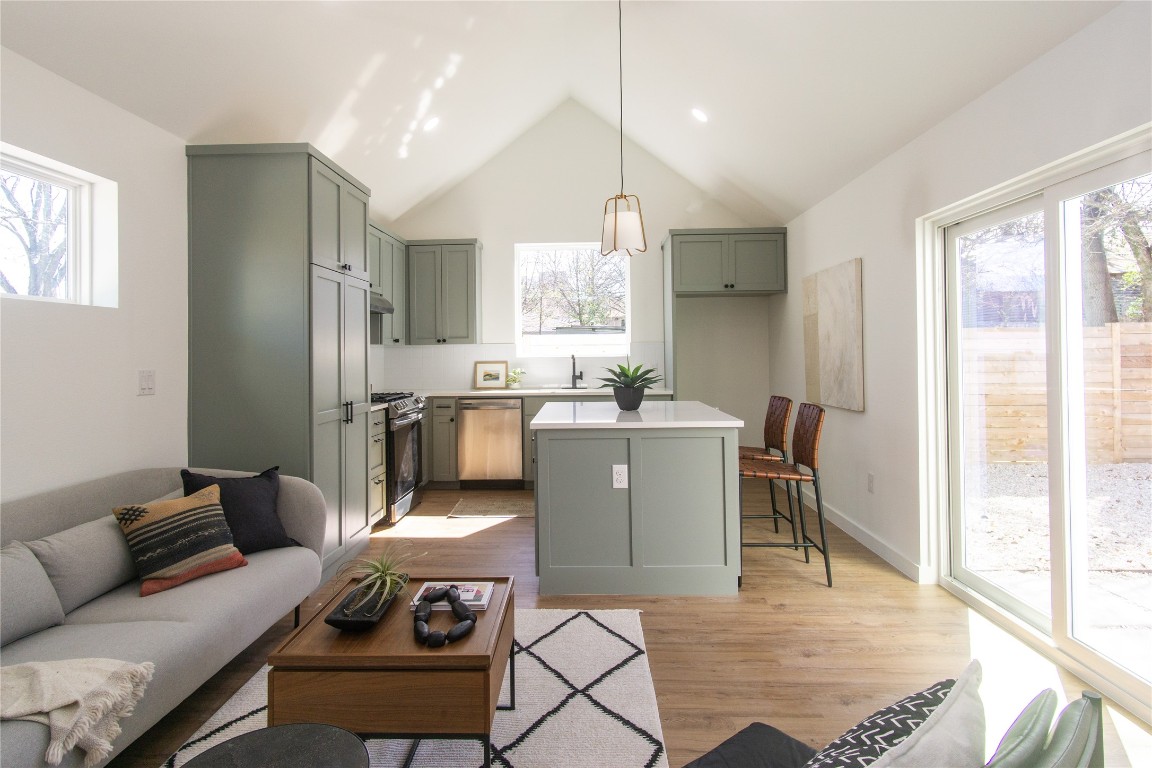 This new construction ADU is built with 2x6 exterior walls, spray foam insulation, and a high ceiling to maximize the space and feel of the home. The home flows seamlessly from the front porch to the living/dining out, sliding glass into your backyard. The two upstairs bedrooms each have a bathroom for increased privacy—one bathroom includes a tub and the other a walk-in shower. The location is AMAZING!! Moments from ABIA, Downtown Austin, ACC Riverside, Riverside Golf Course, Roy Guerrero Park, and the Montopolis Rec Center. The appliance package includes a slide-in range, dishwasher, disposal, and tankless water heater. 1-2-10 warranty provided.