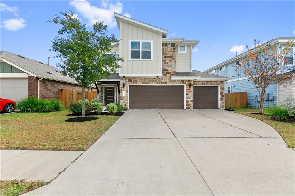 This beautiful 2035 sq ft Milestones contemporary style home built in 2016 boasts abundant natural light, soaring high ceilings, and a spacious open floorplan ideal for entertaining and upgraded flooring. The kitchen has a large central island with quartz countertops, walk-in pantry, and stainless appliances plus a breakfast / dining area. Large master bedroom downstairs has a private bathroom with a walk in shower, double vanity and a large walk in closet. Upstairs two additional bedrooms with walk in closets and a shared bath as well as an extra living area with a ceiling fan that can be used as an office or workout room. Enjoy the convenience of two Nest smart thermostats and a smart sprinkler system. Large private backyard with wood fencing and a covered patio. The 3-car garage upgraded with Polyurethane flooring provides space for vehicles and storage. Walking distance to park and playground at Bryant Park complete with paved walking trail, large grassy area for sports or play, pavilion, hammocks, and more. Moreover, Master Planned Community Easton Park is a resident's paradise with many community amenities to list: the large "Union" community center with fitness studio / gym, tastefully appointed entertaining spaces, resort-style pool, dog park, and community trails. This home is also minutes from McKinney Falls State Park with waterfalls and hike and bike trails. This community is close to Circuit of the Americas, where many exciting events take place throughout the year, and the under-construction Tesla car manufacturing factory is nearby as well. With easy access to I-35, you’ll be downtown in 20 minutes and proximity to 183 will have you at the airport in 15 minutes.